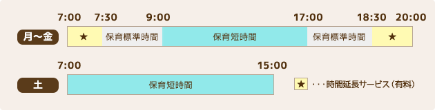 ※うち午前7時00分~午前7時30分・午後6時30分~午後8時00分は時間延長サービスとなり別途料金が発生します